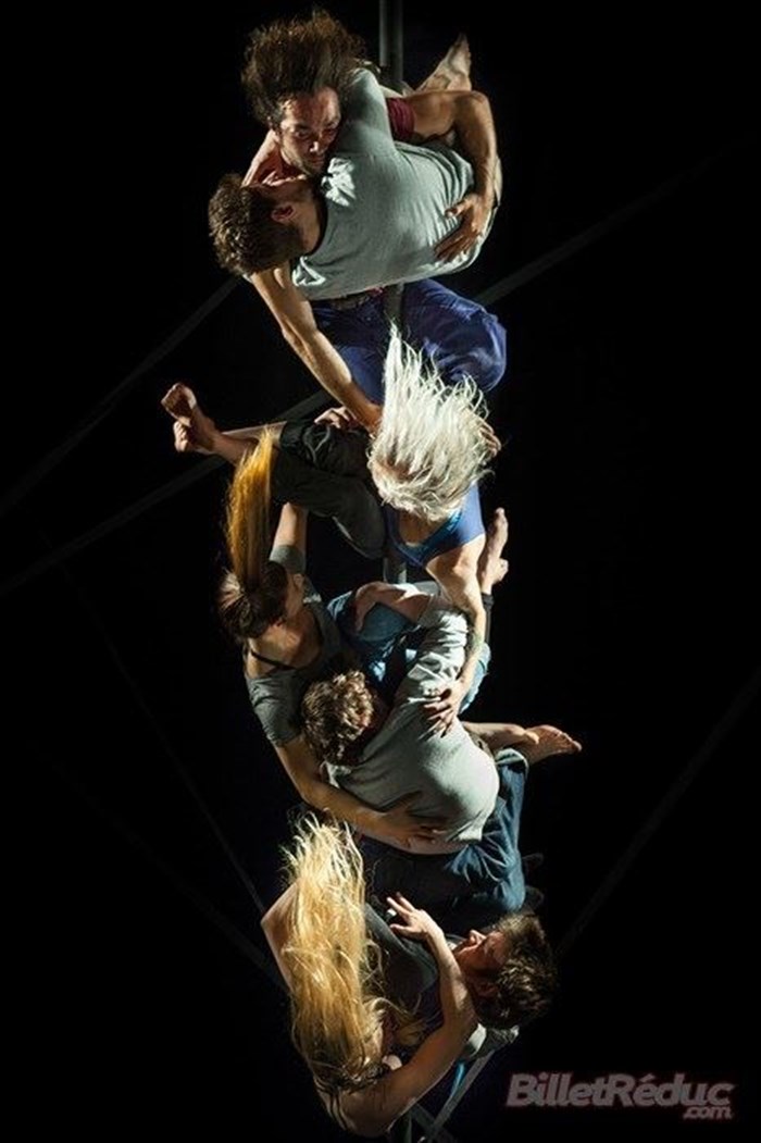 Sept jeunes virtuoses du mât chinois, un dispositif scénique inédit composé de sept mâts chinois asymétriques et de hauteur différente.