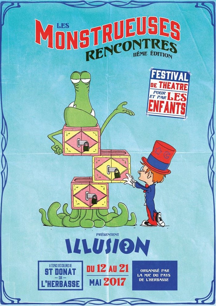 En 2017, la MJC du Pays de l'Herbasse fait rimer Illusion avec représentation, action, expression, improvisation, émotion et passion... puisque c'est le thème de la 11ème édition de son festival de théâtre par et pour les enfants Les Monstrueuses Rencontres, qui se déroulera du 12 au 21 mai à Saint-Donat.