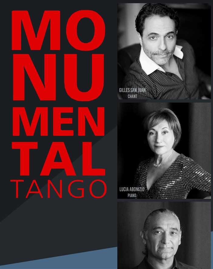 "Monumental Tango" est constitué de trois interprètes exceptionnels issus du milieu musical tanguero, classique et lyrique : la pianiste et compositrice argentine Lucia Abonizio, le bandonéoniste argentin Gilberto Pereyra et le ténor franco-espagnol Gilles San Juan.