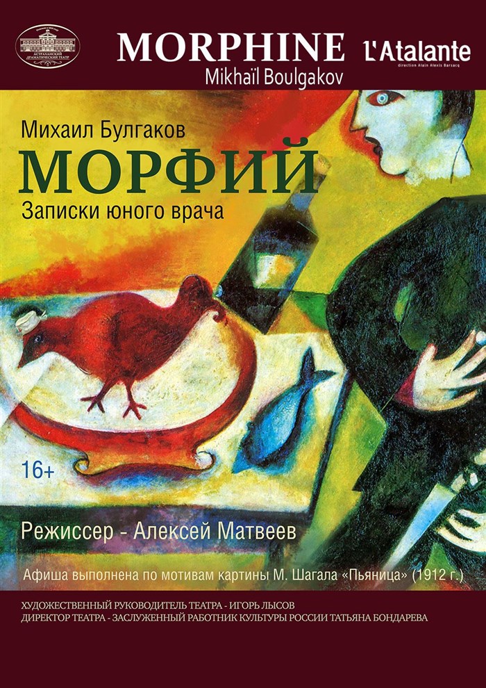 Le récit autobiographique de ce classique russe est devenu une histoire quasi culte. La pièce "Morphine" est mise en scène d'une manière atypique. Elle bouscule l'idée traditionnelle de cette oeuvre de Mikhail Afanassiévitch.