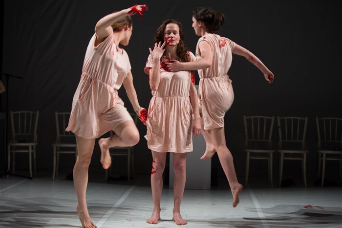 Morsure parle d'aujourd'hui, de ce que beaucoup de femmes vivent en silence, de ce que l'on entend tous les jours dans le métro, dans la rue, et c'est cela qu'elles veulent dénoncer. Les petites violences quotidiennes qui harcèlent et étranglent. Elles sont constantes, sourdes. "On s'y fait", c'est cela qui est grave, que nous refusons. Ces corps rapportés, viennent briser le présent, le temps d'un moment privilégié.