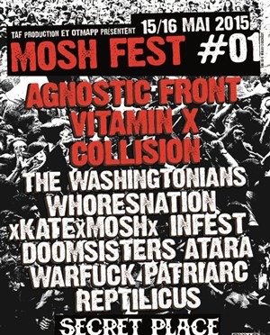 La TAF et la Mosher Team s'associent pour vous offrir un fest qui poutre bien sévère, du son gras, des riffs, et du mosh à gogo ! Une programmation qui prévoit en tout douze groupes plus bourrins les uns que les autres. Hardcore, Grindcore, Thrash.... c'est un rouleau compresseur de décibels qui va s'abattre sur la Secret Place ! Les têtes d'affiche Agnostic Front, Collision et Vitamin X envoient le pâté gras, Mosh, Mosh, Moooooooooooooooooooosh !