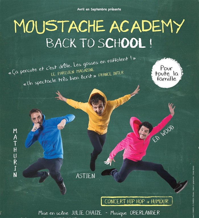 Avec Moustache Academy, le trio du Moustache Poésie Club retourne au CM2 et s'invite à la récré.