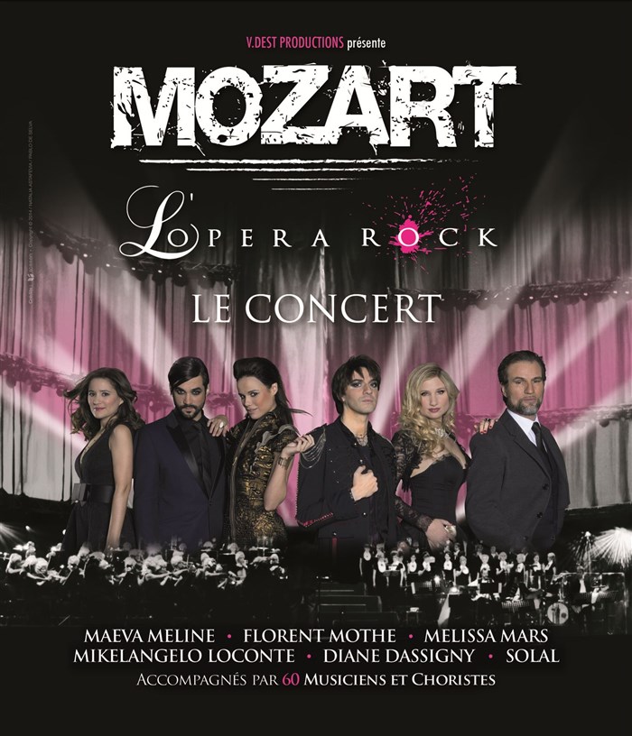"Mozart l'Opéra Rock Le Concert" est présenté par les six artistes de la troupe d'origine, Florent Mothe, Michelangelo Loconte, Solal, Melissa Mars, Diane Dassigny et Maeva Meline.