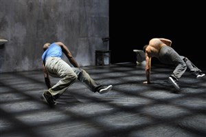 Des murs bétonnés, des lits en vieille ferraille, un lavabo en guise de cabinet de toilettes : le décor a tout de l'austérité et pourtant, de vifs élans optimistes imprègnent le propos de murmures. Si Bouba Landrille Tchouda a choisi d'évoluer en duo dans une cellule de prison, c'est parce qu'il intervient régulièrement dans des maisons d'arrêt depuis dix ans et qu'il connaît particulièrement bien cet univers.