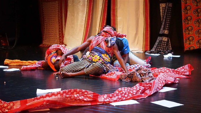 Ici le corps déambule, se regroupe, se déplace, se perd dans l'évocation d'un passé étroitement lié aux croyances communautaires et animé par la transe d'un présent vertigineux. Les mots s'effacent progressivement pour laisser place à l'énergie et l'émotion dégagées par la subtilité chorégraphique des danseurs ; dans un univers scénographique happant, où les corps et les mots entremêlent le passé et le présent, le sacré et le politique.