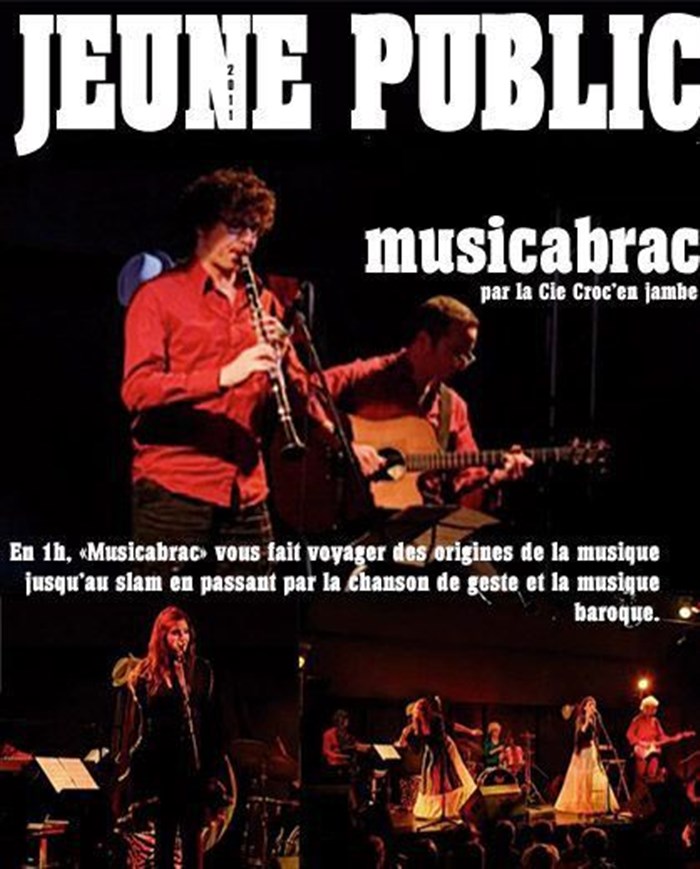 ... et ses croyances à travers toutes sortes de sons émanant de la voix de percussions et plus tard d'instruments à vent et à cordes. En 1h, "Musicabrac" vous fait voyager des origines de la musique jusqu'au slam en passant par la chanson de geste et la musique baroque.