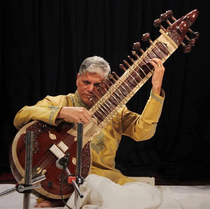 Ecouter un concert de musique Dhrupad, c'est plonger dans une musique très ancienne de l'Inde. C'est entrer dans une forme d'instrospection, à mesure que les sons lentement s'étirent et donnent du sens à la grande improvisation structurée qu'est la performance du concert Dhrupad. Avec une grande délicatesse, Pt. Pushpraj Koshti, tel un sculpteur de son, rend sur son instrument, tout en nuances et en subtilité, le caractère unique des Raagsindiens, comme s'il leur insufflait vie.