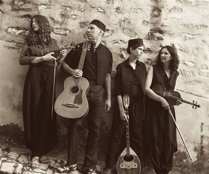 Yannis, Laurence, Mélina et Anatole Vlachos Chant, guitare, oûd, violon, baglama, bouzouki. Et pour la première fois : Daniel Puhec, contrebasse.