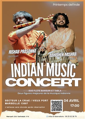 À propos de Musique indienne Rishab Prasanna (flûte Bansuri) et Abhishek Mishra (tabla)