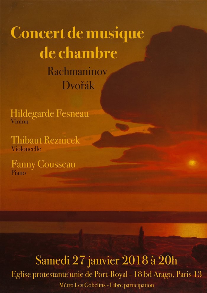 Venez écouter les deux trios sublimes de Rachmaninov (trio élégiaque) et de Dvorak (Dumky) dans le cadre néo-byzantin du temple protestant de Port-Royal.