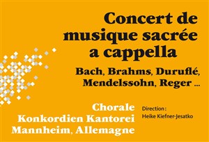 Un programme très varié d'oeuvres sacrées a cappella pour choeur à quatre ou huit voix mixtes interprété par la chorale Konkordien-Kantorei de Mannheim (Allemagne)