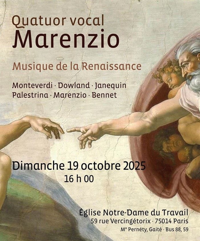 Désireux d'explorer le riche répertoire musical de la renaissance, le Quatuor vocal Marenzio constitué en 2024 est la rencontre de 4 chanteurs de Haut Niveau, tous issus du Choeur de Chambre Arthémys.