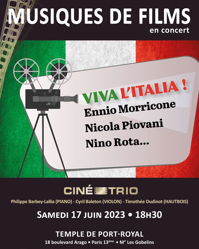 Ennio Morricone, Nino Rota, Nicola Piovani... Les compositeurs italiens seront à l'honneur de ce 55ème concert thématique du Ciné-Trio à Paris !