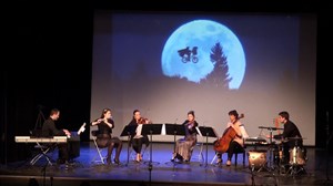 6 musiciens sur scène : clavier, cordes, flûte et percussions.