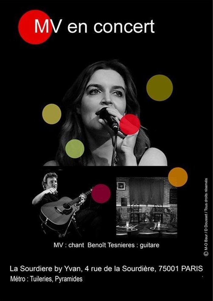 Après le succès de leurs précédents concerts, MV et le guitariste Benoît Tesnieres joueront sur la scène de la Sourdière, un bar à vins cosy situé à proximité du parc des Tuileries.