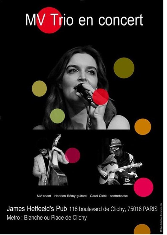 Pour ce premier concert au James Hetfeeld's Pub, MV retrouve le guitariste Hadrien Rémy et le contrebassiste Carel Cléril.