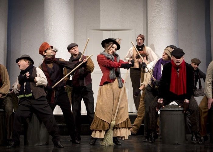 My Fair Lady se déroule à Londres à l'époque victorienne. Eliza Doolittle est une jeune fille des milieux populaires qui gagne sa vie en vendant des bouquets de violettes.