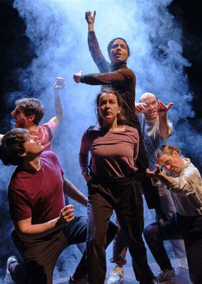 Le collectif In Itinere propose une oeuvre originale et atypique pour représenter la révolution en comparaison avec la menace d'une tempête. Ainsi, l'histoire de la Commune de Paris est reliée au présent et à la nécessité imminente d'une révolte écologique. Mime, chorégraphies, gestuelle... les corps des sept comédiens et comédiennes de nationalités différentes disent la lutte, l'espoir et le collectif. Ce spectacle est passionnant mérite le détour !