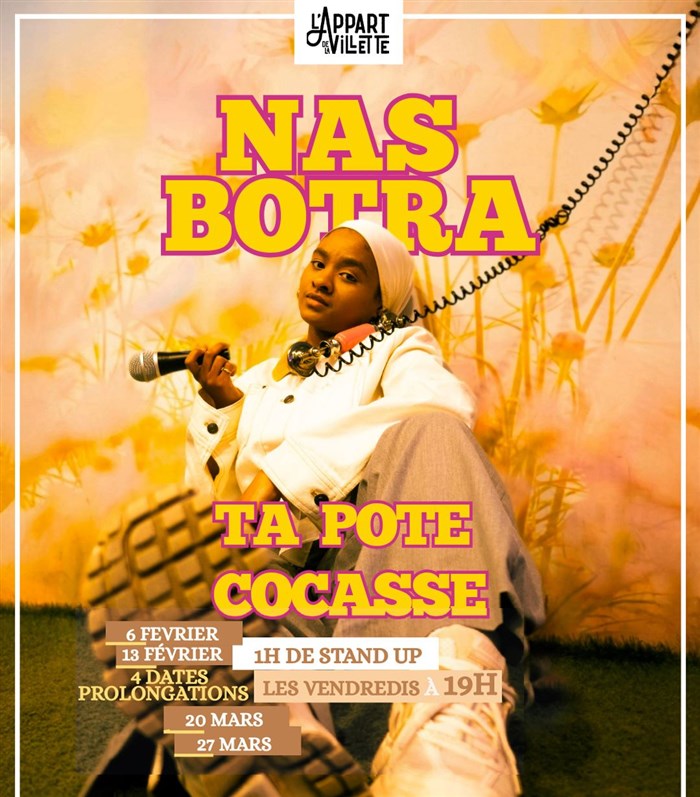 Découvre Nas Botra dans Ta pote cocasse, qui fait partie de notre sélection d’événements de type One Woman Show et qui se tient ici : L'Appart de la Villette -