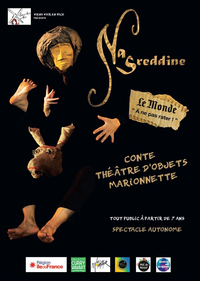 On a l'habitude de pénétrer dans l'univers de Nasreddine via les racontées ou les lectures, il y avait donc une appréhension à venir voir un spectacle qui scénarise ces contes. Appréhension levée dès les premières minutes. Intelligence de la gestion du texte, talent des artistes sur le plateau, tout contribue à rendre magique la petite heure passée en compagnie de Nasreddine. Tout est ici délicatesse, poésie et tendresse. L'utilisation subtile des percussions corporelles, le travail sur les masques, le choix astucieux des contes (qui sont pour la plupart adaptés à un jeune public) on ne tarirait pas d'éloges Il faut que ce spectacle soit vu par un maximum de spectateurs, et au delà de ça, qu'il donne envie aux grands et aux petits de lire, et relire Nasrreddine...Il habite "chez nous" depuis de nombreuses années, et sa compagnie berce nos rêves de génération en génération... BRAVO pour ce moment de grande douceur dans le monde de Nasreddine !