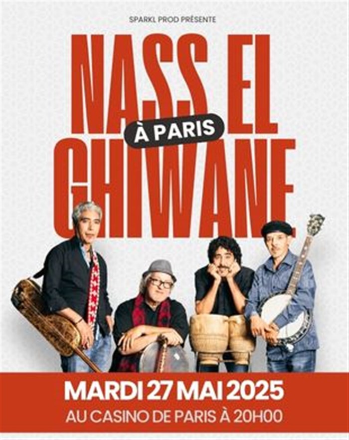 Après avoir enflammé les scènes de plusieurs villes françaises, belges et hollandaises, Nass El Ghiwane reviennent rencontrer leur public parisien pour un concert exceptionnel au Casino de Paris, le 27 mai 2025.