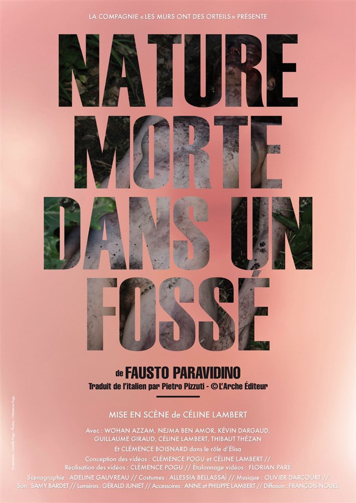 Créée en 2002 à Milan, Nature morte dans un fossé met en scène six personnages (Cop, Mother, Pusher, Boyfriend, Bitch et Boy) qui vont, à travers une suite de monologues, nous donner leur point de vue sur l'enquête et sur Elisa.