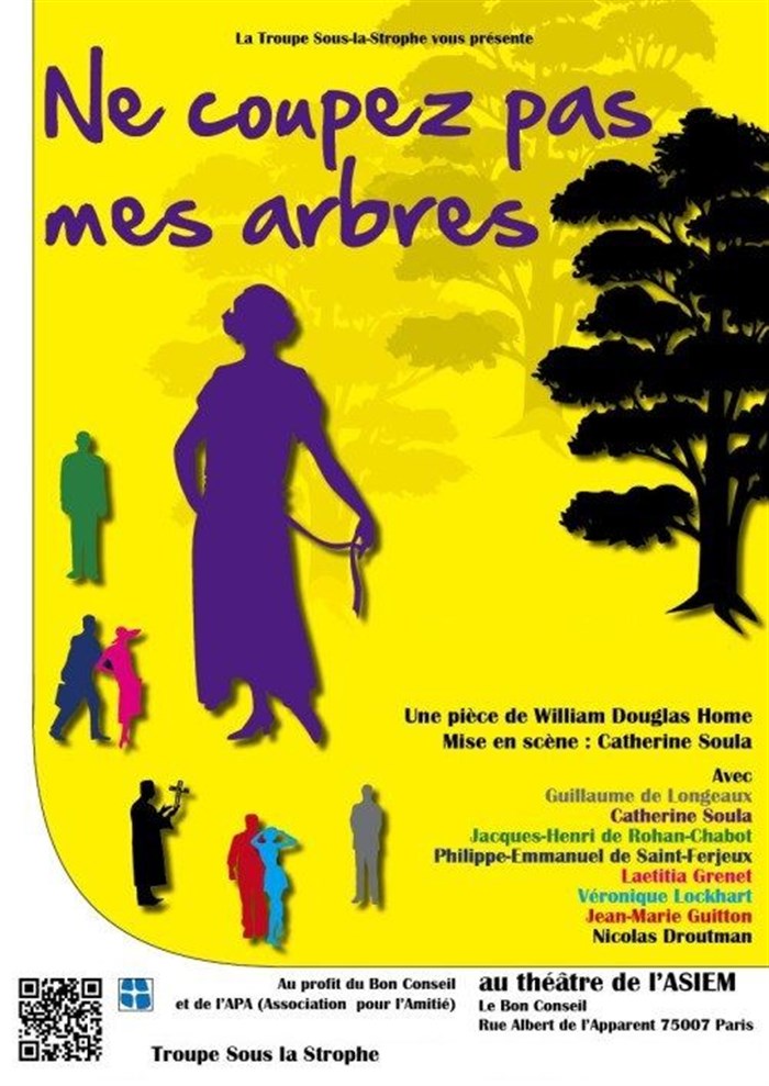 "Ne coupez pas mes arbres" (" Don't cut my trees ") est une comédie britannique de William Douglas Home composée en 1972, adaptée en France par Marc Gilbert Sauvajon.
