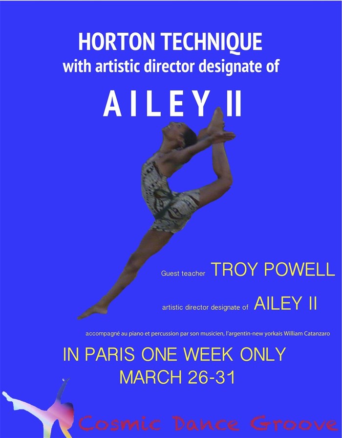 L’événement New York : Modern dance en stage à Paris : guest teacher Ailey 2 artistic director designate Troy Powell de type Atelier / Stage, organisé ici :