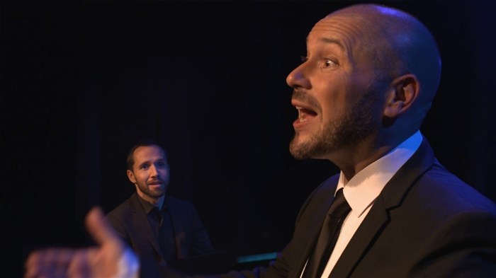 v Portés par les chansons de Brel et de Barbara, les deux amis affirment leur identité artistique mais ils se retrouvent malgré eux dans une confusion totale. Les époques se mélangent, les rôles se confondent. "Leur" histoire devient leur histoire. Ils aiment Brel et Barbara, mais ils ne sont ni Brel ni Barbara.