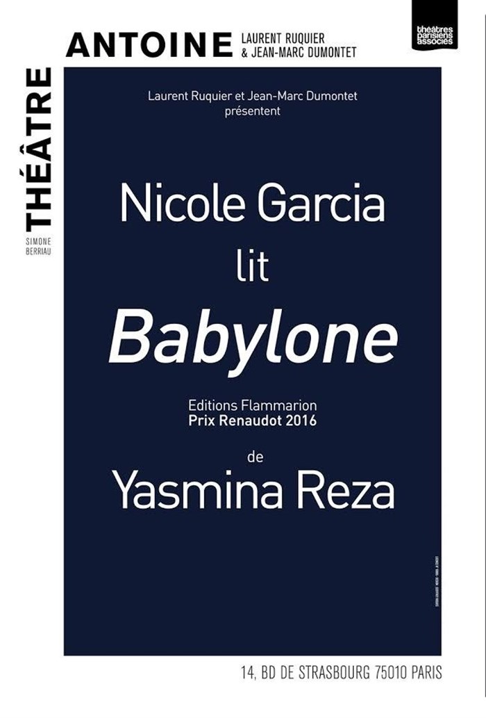 Oui, cette fois, Yasmina Reza pousse au crime...! Cette fois aussi, elle creuse un peu plus une mélancolie dans laquelle il serait difficile de ne pas se reconnaître. Ce soir, Nicole Garcia donnera voix à Elisabeth la narratrice de Babylone.