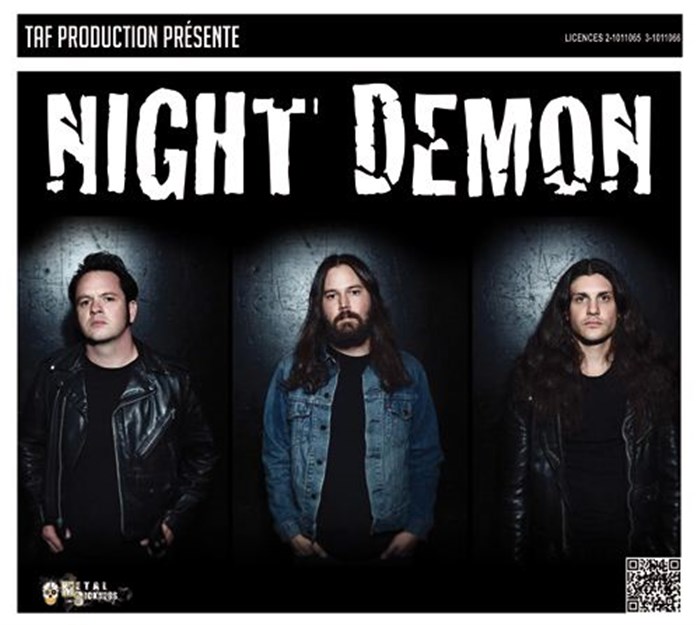 Originaire de Ventura en Californie, Night Demon est composé de Jarvis Leatherby (chant et bass), Brent Woodward (guitare) et Dusty Squiers (batterie).