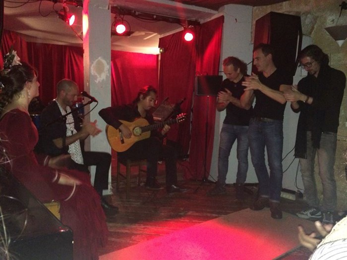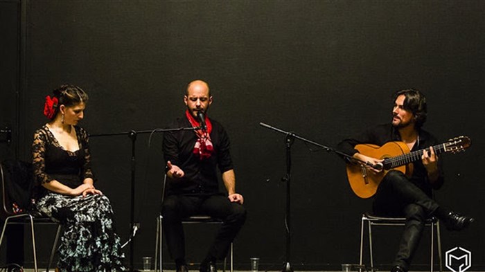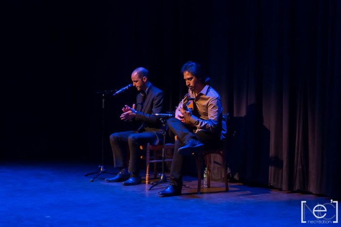 Concert flamenco. Sur scène: un chanteur et un guitariste dans une ambiance intimiste vous font rentrer en contact avec l'essence du chant flamenco.