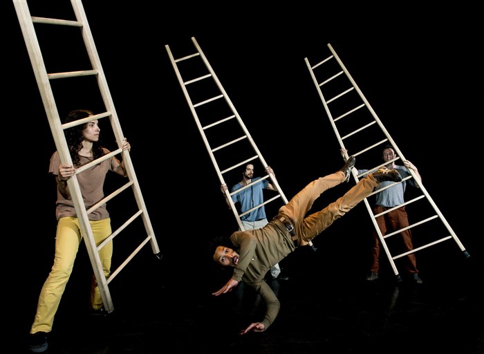 Confrontés à de simples échelles, quatre personnages déconstruisent les méandres de nos contradictions profondes et donnent corps aux liens invisibles qui nous unissent ou nous opposent. Ils révèlent l'incidence des choix individuels sur le collectif. La confusion du monde est restituée par une ambiance sonore où se superposent le jazz et l'électro, les vieilles chansons, les musiques de genre ou classique.