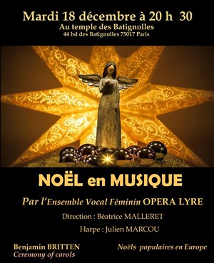Au programme : Ceremony of carols de Benjamin Britten et des Noëls populaires en Europe (The infant King de J.Rutter, Ave Maria de J.Brahms, Marche des rois, P. Libes, etc.).