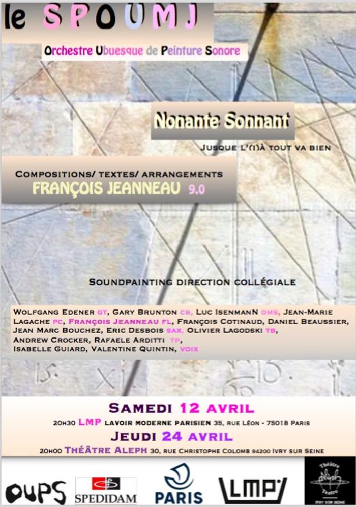 Après avoir fêté ses 20 ans en 2024, le Spoumj fête les 90 ans de FJ, son DA, avec compositions et textes de sa plume, certifiés bios et sans IA, sauf dans quelques fantaisies du comité scientifique du Spoumj via son appli OUPSGPT. Et toujours son appli de base GGCCD Gestes Générant une Composition Collaborative en Direct.