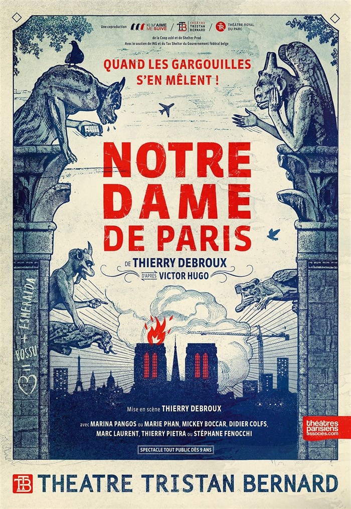 Belle mise en scène pour cette pièce très fortement inspirée du texte de Victor Hugo. Les décors sont surprenants, les comédiens sont bons et la musique nous replonge dans cette période éloignée où la vie parisienne était bien plus rude. On retrouve la jolie Esméralda, Quasimodo et surtout les gargouilles qui prennent vie. Amusant conciliabule sur les toits de Notre Dame.