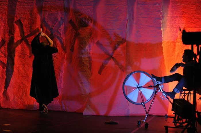C'est à partir du roman, de cette machine à rêver, que la Compagnie Les Yeux Grands Ouverts a travaillé pour donner vie à un Don Quichotte contemporain où, avec la complicité de l'écrivain Sylvain Levey, la troupe a cherché à créer l'univers intérieur de ce personnage hors normes afin de faire naître son rêve de Quichotte.