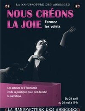 Tu veux savoir ce qu’ont pensé les spectateurs et la presse de cet événement : Nous créons la joie - fermez les volets - La Manufacture des Abbesses ? Découvre leurs avis éclairés et prépare-toi à vivre un moment d’exception à ton tour en réservant tes places !