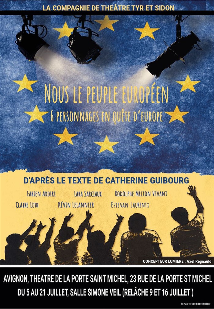 une pièce, drôle et profonde et suprême mérite, contradictoire, Nous le peuple européen, six personnages en quête d'Europe, jouée par la compagnie professionnelle Tyr et Sidon.