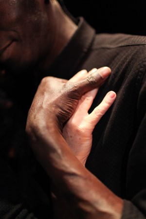 D'une simple et belle histoire d'amour entre une femme blanche et un homme noir, Élise Chatauret fait un spectacle qui aborde bien des questions délicates : l'exil, l'intégration possible à une autre culture, l'identité, la langue.