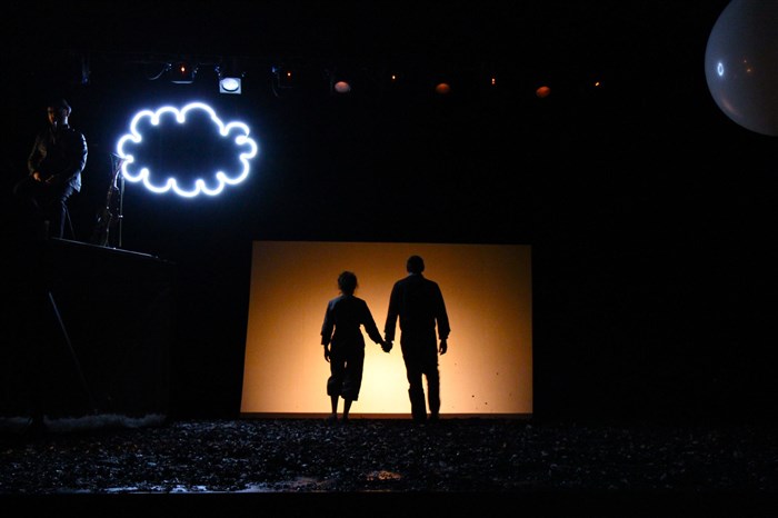 Un musicien, comme s'il en était le démiurge, surplombe l'espace scénique et accompagne cette bulle d'une musique rock onirique. Un spectacle à découvrir en famille, qui caresse nos failles et réveille notre enfant intérieur.