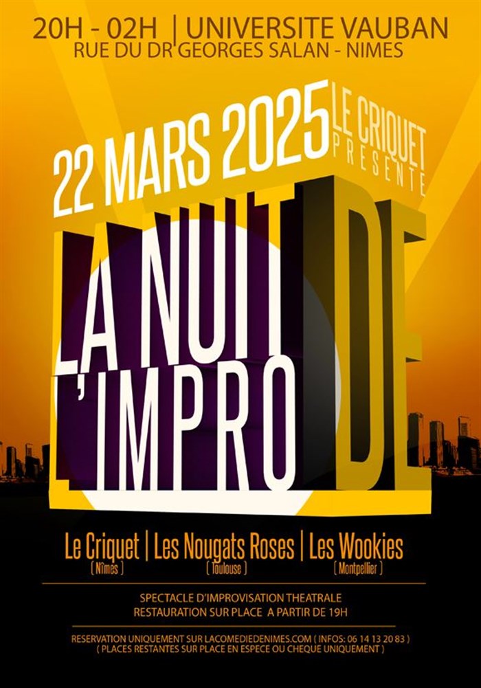 Tu veux savoir ce qu’ont pensé les spectateurs et la presse de cet événement : Nuit de l'impro 2025 - Amphithéâtre Site Vauban - Université de Nîmes ? Découvre leurs avis éclairés et prépare-toi à vivre un moment d’exception à ton tour en réservant tes places !