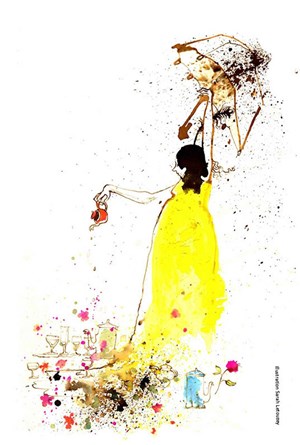Une femme promène dans sa brouette des théières, et autres trésors. D'éclaboussures en tintements, elle nous emmène dans une histoire d'eau et de musique.