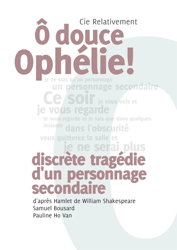 Ophélie ne sait rien de la tragédie dans laquelle Shakespeare précipite Hamlet. Elle n'apparaît que dans peu de scènes et ignore ce qui se déroule en son absence. Elle voudrait questionner, intervenir, mais ses répliques sont trop courtes, trop sages, convenues. Elle a surtout appris à se taire, à ne pas s'imposer. Elle n'est qu'un personnage secondaire dans une histoire qui n'est pas la sienne.