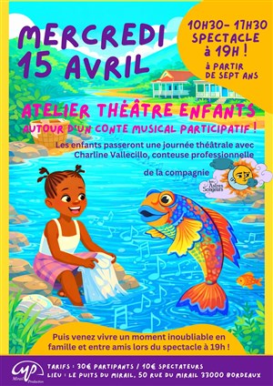 Au fil de la journée, les enfants plongent dans l'univers du spectacle et deviennent eux-mêmes les personnages de l'histoire, aux côtés de la conteuse. Entre chansons, jeu théâtral et petites chorégraphies accessibles à tous, ils participent activement à la création d'un spectacle vivant et joyeux.