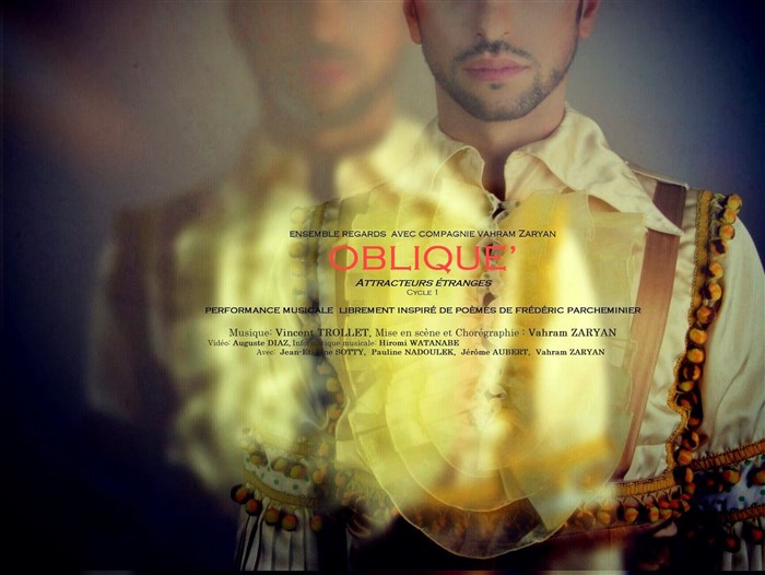 A l'origine du projet, Vahram Zaryan, chorégraphe et performer, a proposé à un groupe d'artistes le thème de l' " Oblique ". Frédéric Parcheminier a alors écrit les textes, Vincent Trollet une musique originale pour un accordéon à quarts de ton avec dispositif électroacoustique. Vahram Zaryan en collaboration avec le compositeur Vincent Trollet ont mis en scène un quatuor composé de deux musiciens, d'un performer et un acrobate aérien.