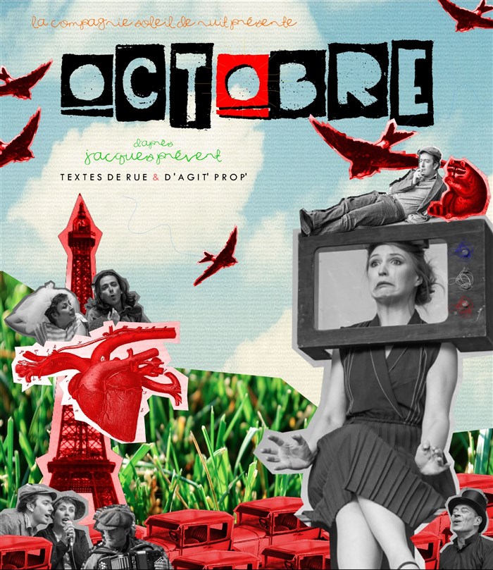 Alternant textes de Prévert (Citroën, Marina, La Crosse en l'air, le Réfractaire...) et chansons de l'époque, intégrés dans une trame historique et poétique dans le style des choeurs parlés de Prévert, "Octobre" rend hommage au Prévert militant.
