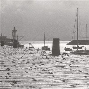 Au petit matin, un homme debout sur la jetée du port de Lisbonne regarde et voit au lointain arriver un bateau.