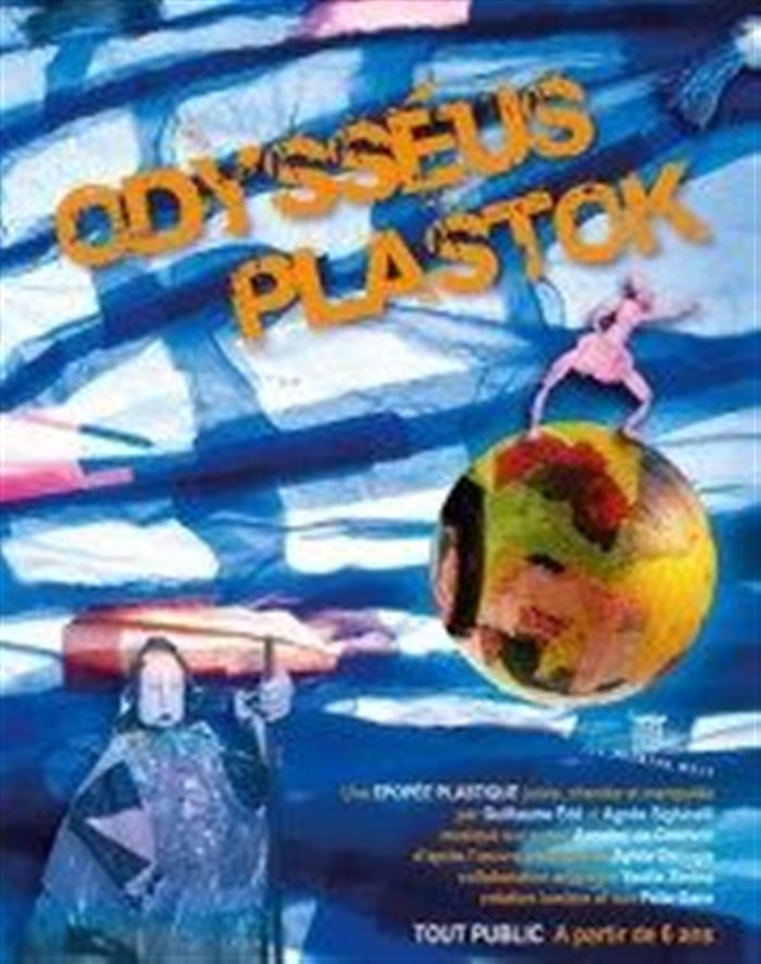 Texte, jeu manipulation et chant: Guillaume Edé et Agnès Sighicelli; Annabel de courson, musicienne et compositrice est présente sur scène et accompagne en direct tout le spectacle. D'après l'oeuvre plastique de Sylvie Decugis. Mélant marionettes, objets, théâtre et chant, cette Odyssée "plastique" nous parle avec humour et magie des méfaits du polymère dans le milieu marin.